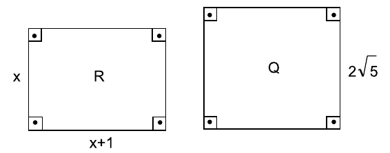 Um retângulo R, cujas medidas dos lados são expressas por dois números naturais consecutivos, e um quadrado Q, mostrados nas figuras, com dimensões indicadas em centímetros, têm áreas iguais.