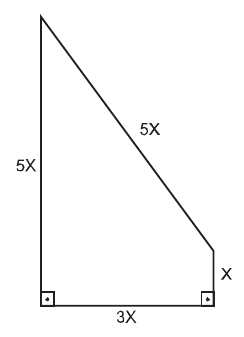 A figura representa um terreno com formato de trapézio retangular, com lados medindo X, 3X, 5X e 5X metros.