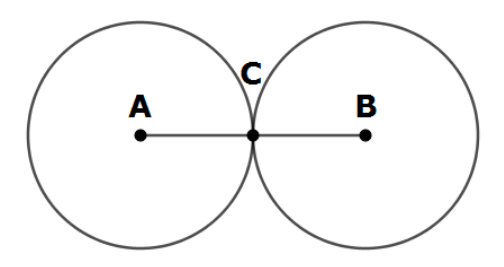 Os círculos são tangentes no ponto C, e os pontos A e B representam o centro de cada círculo. Logo, a medida do segmento AB é: