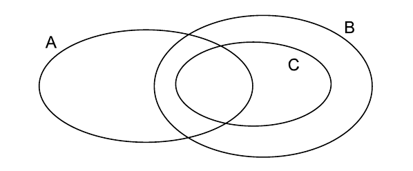 (B) há pelo menos um elemento de C que é elemento de A e não é elemento de B.