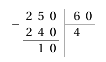 ▶ 250 ÷ 60 = 4 horas e 10 minutos