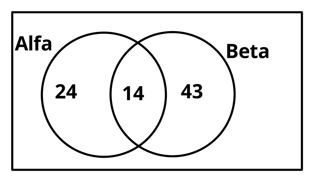 O primeiro valor a ser preenchido é a intersecção dos bancos Alfa e Beta com 14 elementos.