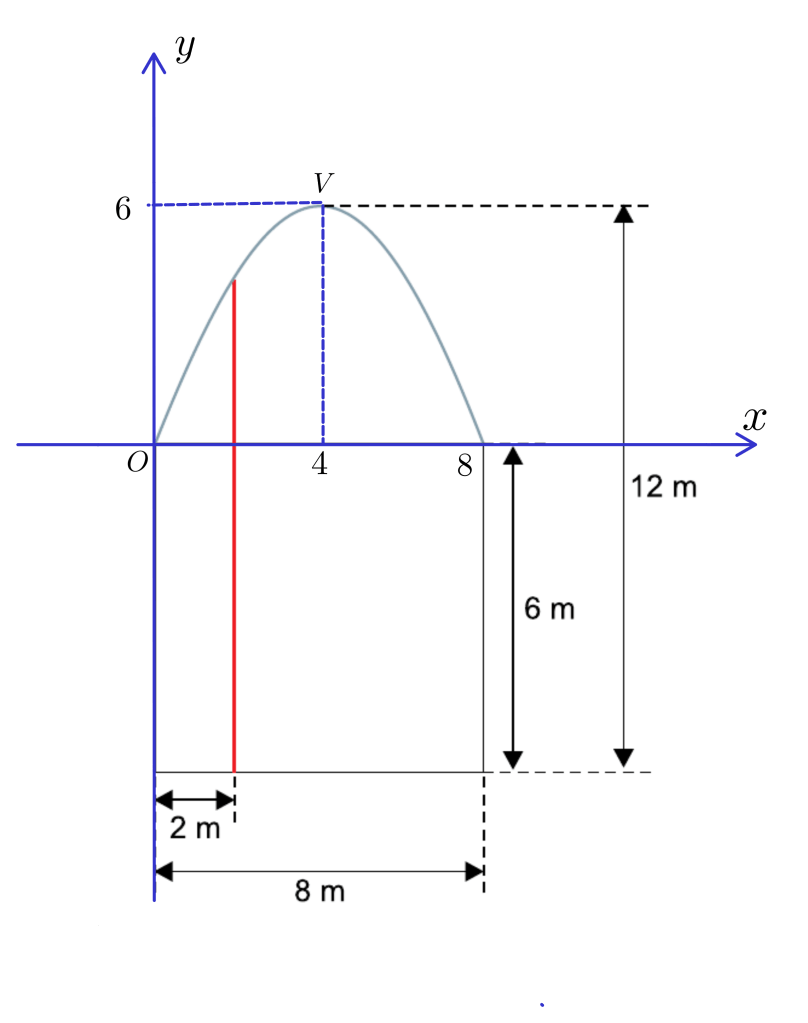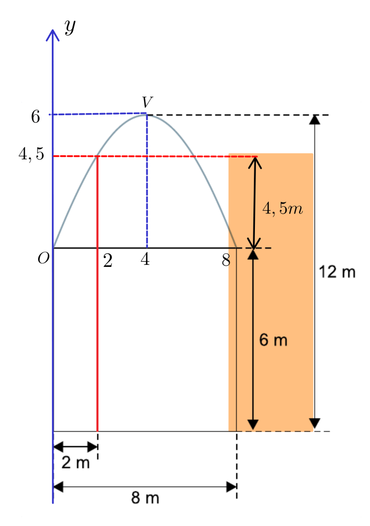 Vamos colocar a parábola em um plano cartesiano, de modo que a origem coincida com o vértice superior esquerdo da estrutura retangular.