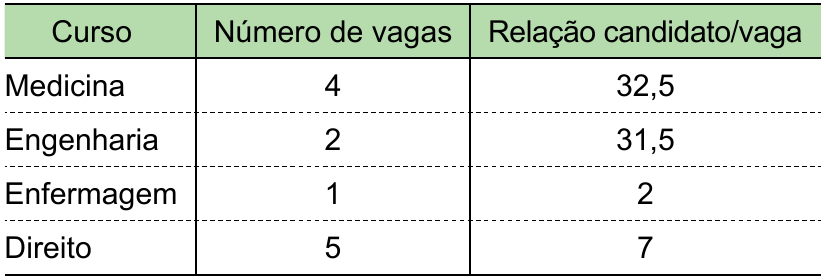 A tabela indica a relação candidato/vaga no processo seletivo de acesso à pós-graduação de quatro cursos de uma universidade: