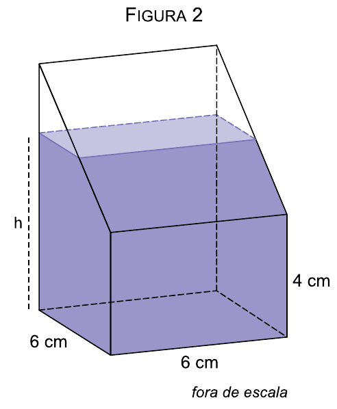 Se esse prisma for apoiado sobre sua face quadrada, a água em seu interior atinge uma altura h, conforme a figura 2.
