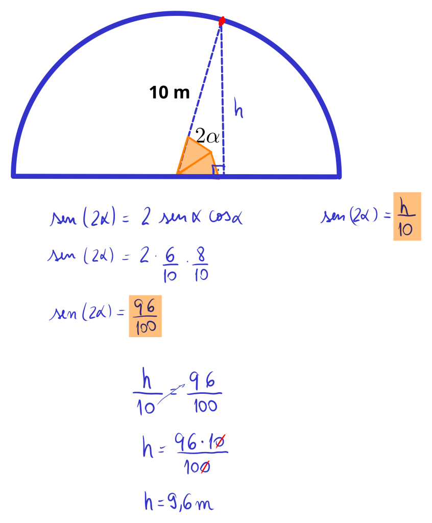 Sabendo que sen (2α) = 2 sen (α) cos (α), quando esse ângulo medir 2α, a altura do inseto em relação à horizontal será