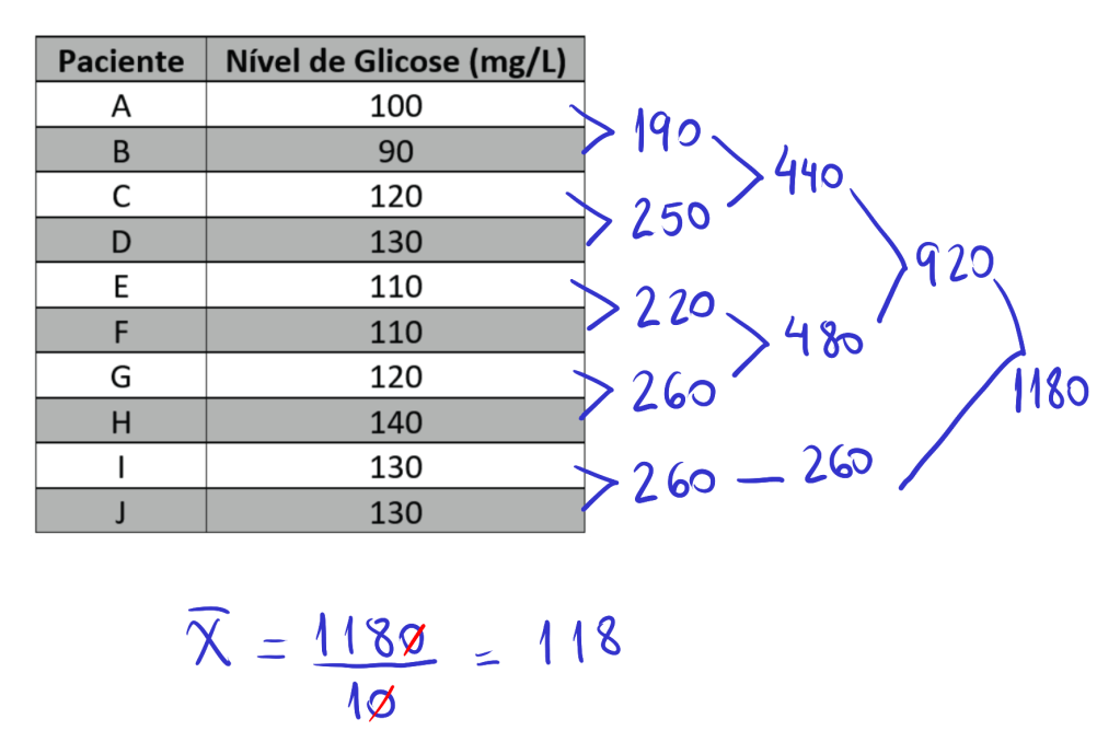 Um hospital coletou dados sobre os níveis de glicose em jejum de um grupo de 10 pacientes, para avaliar o impacto de um novo tratamento para o controle do diabetes. Os níveis de glicose, medidos em mg/dL, foram registrados no quadro a seguir: