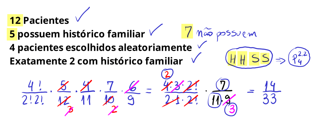 Um laboratório de pesquisa está realizando um estudo clínico para testar a eficácia de um novo medicamento. Para isso, foram selecionados 12 pacientes para participar do estudo, dos quais 5 possuem um histórico familiar de doenças cardiovasculares,o que os torna particularmente importantes para a pesquisa. O estudo exige que sejam escolhidos aleatoriamente 4 pacientes para compor o grupo de controle.