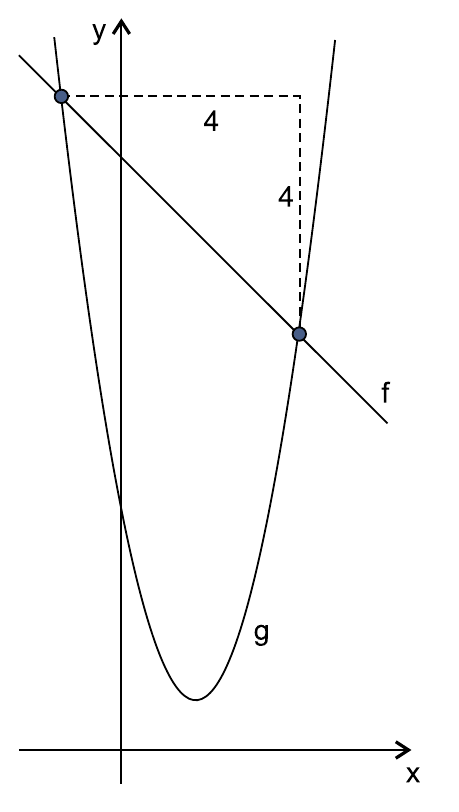 . Os gráficos dessas funções se intersectam em dois pontos tais que a distância entre suas abscissas e a distância entre suas ordenadas é igual a 4.