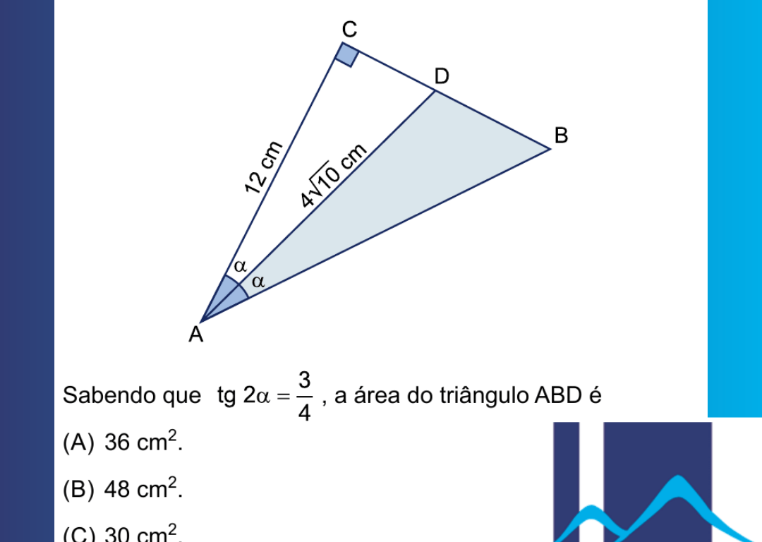 Sabendo que tg 2α = 3/4, a área do triângulo AB D é