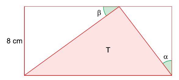 Um triângulo T tem 2 vértices em comum com um retângulo e o terceiro vértice sobre um dos lados desse retângulo, conforme mostra a figura.