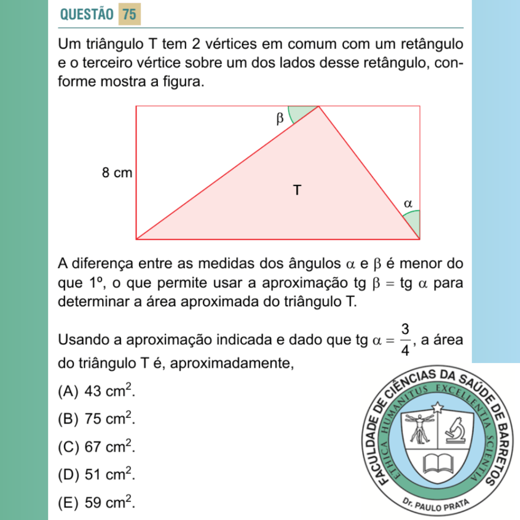 Usando a aproximação indicada e dado que tg α = 3/4, a área do triângulo T é, aproximadamente,