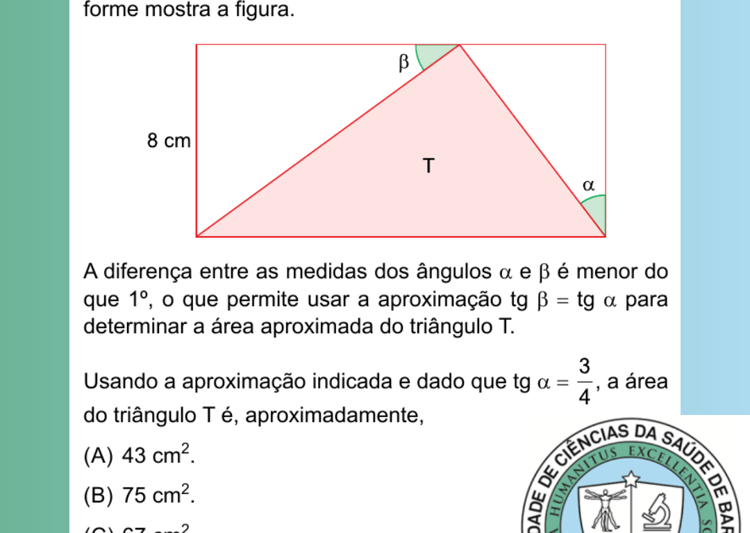 Usando a aproximação indicada e dado que tg α = 3/4, a área do triângulo T é, aproximadamente,
