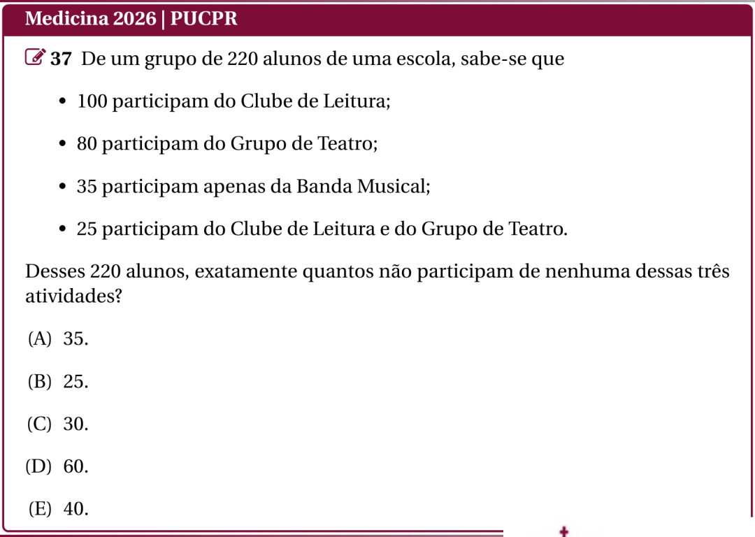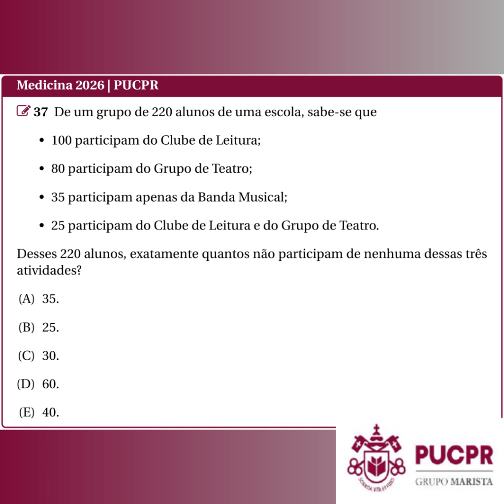 37. De um grupo de 220 alunos de uma escola, sabe-se que