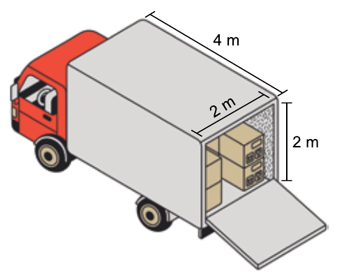 4 m x 2 m x 2 m. Será realizado o transporte de caixas cúbicas, de madeira, com arestas medindo 55 cm.