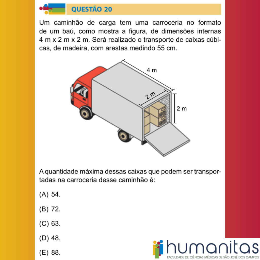 A quantidade máxima dessas caixas que podem ser transportadas na carroceria desse caminhão é: