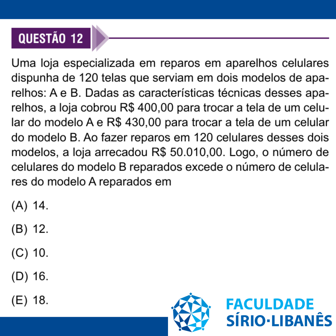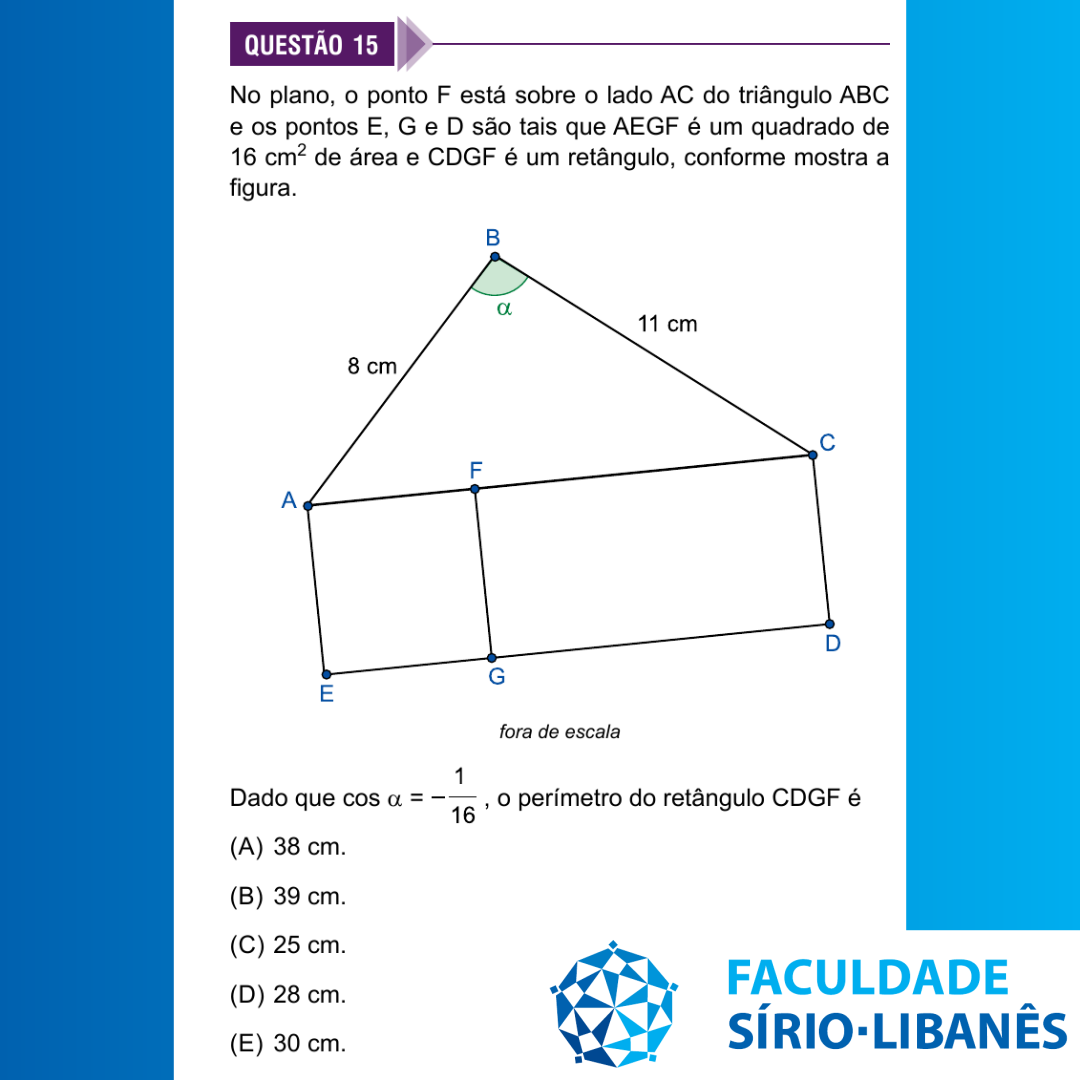 QUESTÃO 17A área de um hexágono regular de lado de medida ℓ é dada por \(\dfrac{3 \ell^2 \sqrt{3}}{2}\). Um prisma reto tem \(2 \sqrt{3}\) cm de altura e sua base é um hexágono regular. Nesse prisma, a razão entre a área de uma base e a área de uma face lateral é igual a 6. … Ler mais